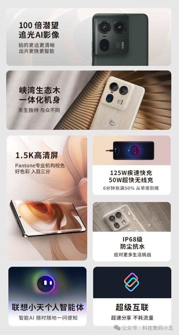 它的100倍潜望变焦,让你随时随地都能捕捉到生活中的美好瞬间;125W疾速快充,让你告别电量焦虑,享受无忧的数字生活;而峡湾生态木一体化设计,则让每一次握持都成为一次与自然的亲密接触。更重要的是,联想小天个人智能体的加入,让手机成为了你生活中不可或缺的智能伙伴。