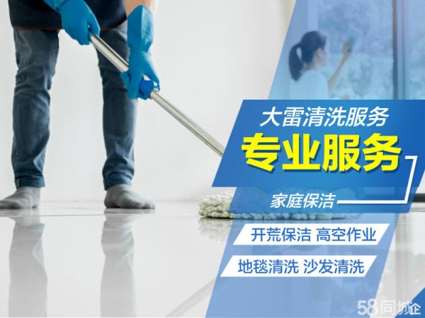 公司简介:公司自成立之初就将严格的质量要求,精湛的保洁技术,优异的服务理念,科学的企业管理和良好的信誉作为我们兴办企业的重点,并且服务形式灵活多样,价格合理,并全心全意为客户提供细致周到的服务,客户的满意和认可是我们赖以生存的基础,也是我公司全体员工坚持不懈的追求目标。服务内容:1、开荒保洁:办公楼开荒、写字楼开荒、公司开荒、家庭开荒、工程开荒、楼宇开荒、会所、山庄、别墅、四合院、俱乐部开荒保洁。2、家庭保洁:新老居室开荒保洁、空房保洁、出租房保洁、居室全方位保洁、别墅/公寓精细保洁。3、高空作业:高空安装拆除、外墙清洗、室内外粉刷、玻璃幕墙、窗户玻璃清洗。4、地板打蜡:木地板打蜡、液体蜡、固体蜡。5、烟机清洗:采用专业清洗剂清洗、去油污力强且不损伤管道内壁、清洗剂符合国家环保标准。6、地毯清洗:家用块毯、办公地毯、纯毛、纤维、混纺地毯清洗保洁养护。7、沙发清洗:沙发清洗保养优势、焕然一新、技术过硬、保养经验。8、石材护理:石材打磨翻新 、石材结晶 、抛光、大理石专业养护。9、空调清洗:专业空调维修、检测、清洗、保养、消毒、空调清洗。10、除甲醛:中草药除甲醛空气净化不反弹无二次污染。11、各种瓷砖美缝:墙面瓷砖美缝、地面瓷砖美缝、易清洗、一擦就净、光亮如瓷、彻底解决瓷砖缝脏黑、发黄的难题。12、设备清洗:锅炉清洗、换热器清洗、蒸发冷凝器清洗。13:家电清洗:油烟机清洗、热水器清洗、洗衣机清洗、冰箱除味消毒、地热清洗。本公司服务承诺:我们的施工团队经验丰富,工作认真,细心,专业,责任心强;我们的服务宗旨是让您满意,放心,欢迎新老客户洽谈业务,选择我们您就选择了专业,选择我们您就选择了放心。