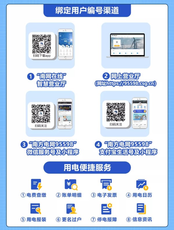 下载“南网在线”App,或是打开“南方电网95598”微信公众号,点击关注并绑定用户电话号码或者户号即可查询。