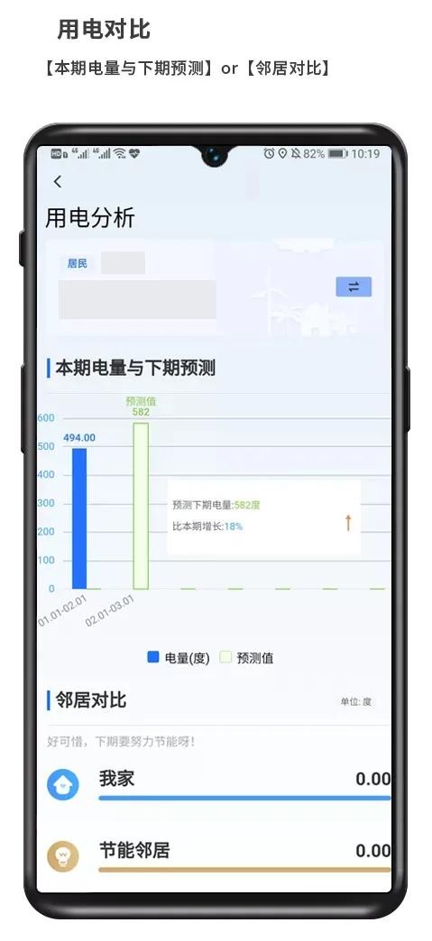 您不仅可以查询到家庭每日用电量,还可在“用电分析”中查询与去年同期对比、与邻居对比的情况,更有利于您节约用电哦!