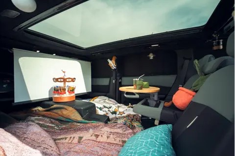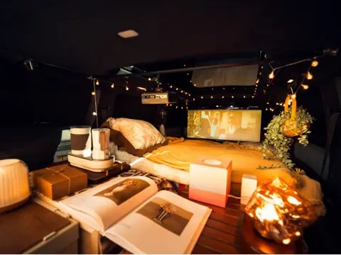 此外,该车配备-6℃至50℃宽温域冷暖冰箱,随时提供冷饮或热饮;后备箱顶部预留投影仪支架,结合21扬声器高端音响,可快速变身“移动影院”,挂起幕布即可享受亲子观影时光,让户外休憩与娱乐体验堪比居家舒适度。