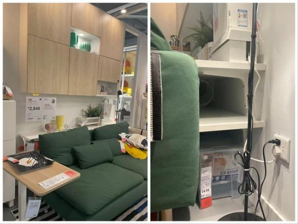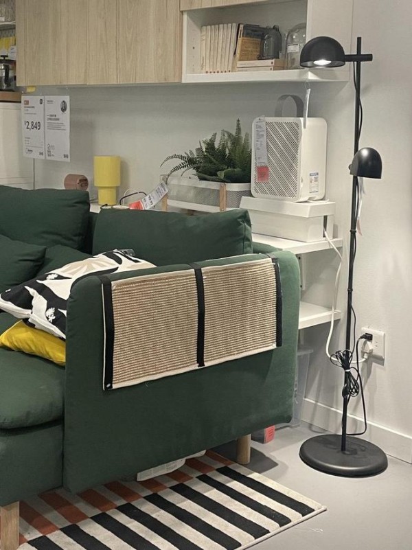逛宜家时,发现了隔板的天才想法:沙发背后装两层宜家隔板架。