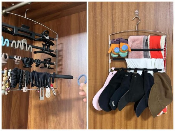 发饰,围巾,首饰...这些小物最难整理。看到网友 @努力的买买提 用多层魔术裤架收纳,真的绝。