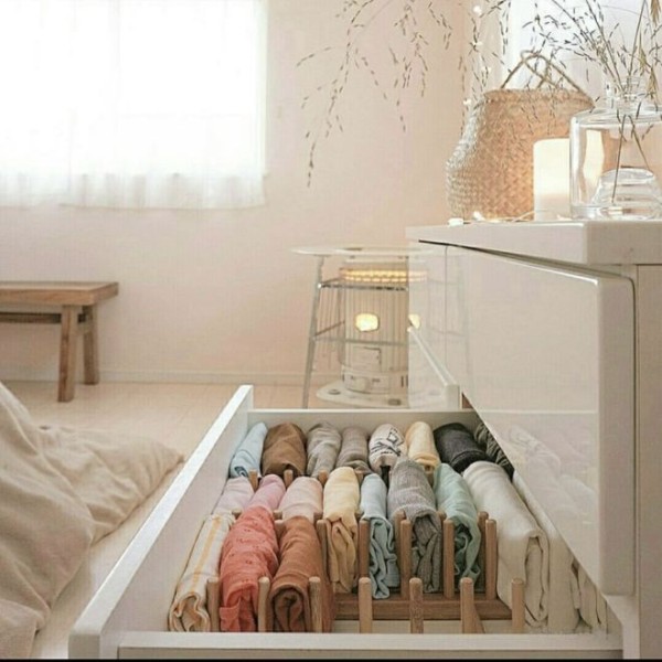 放在卧室抽屉里分隔收纳T恤、长裤,一拉抽屉一目了然,非常方便好拿,再也不会“动一件乱一堆”了。