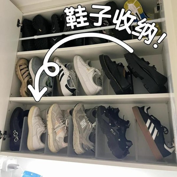 鞋柜太浅放不下鞋子,它也能救场。网友 @豆芽菜菜子 家玄关柜柜深有21cm,完全没办法竖着或横着放鞋。