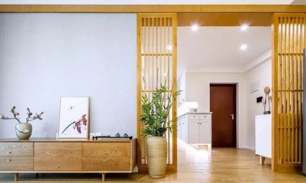 自然的纹理加上简单的线条构造出富有层次的木质隔断,彰显低调典雅。