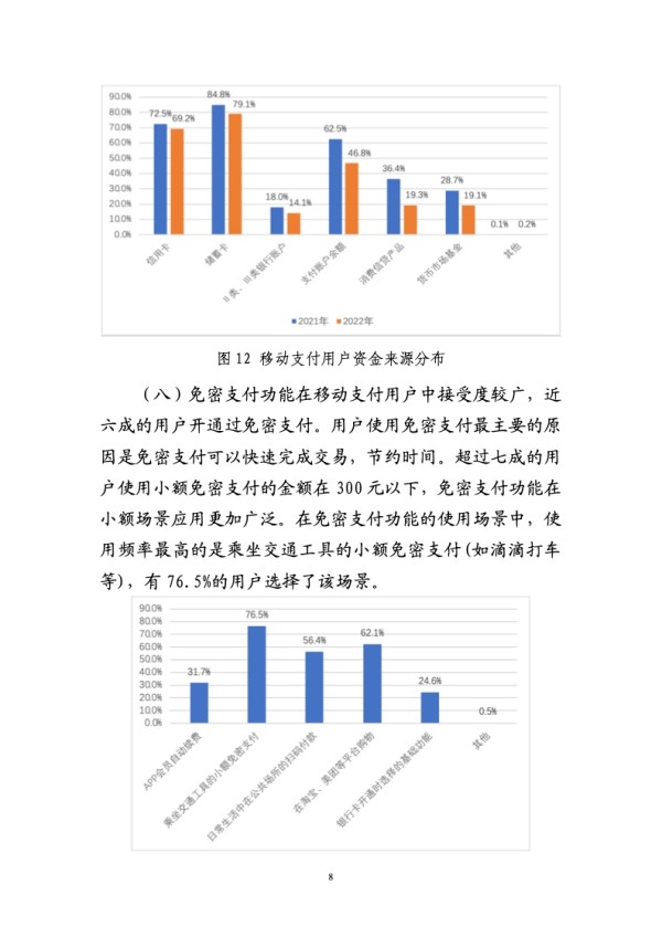 报告指出,90%的单笔支付金额区间集中在500元以下。各类场景的移动支付渗透率进一步提高,餐饮食品类场景、交通出行类场景、民生服务类场景的渗透率分别为96.9%、76.3%和68.5%。医疗健康类成为主流使用场景之一。