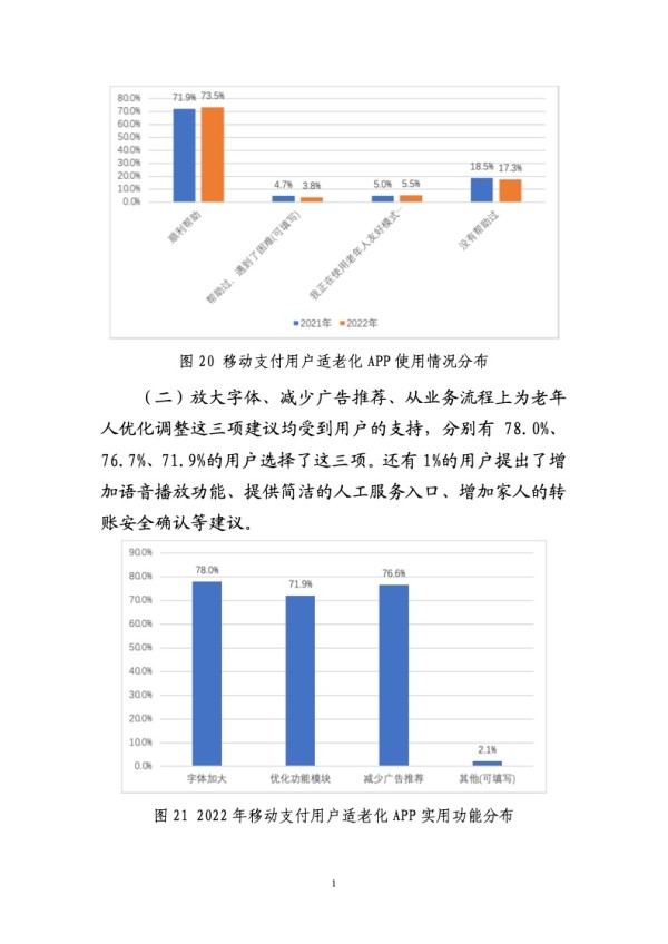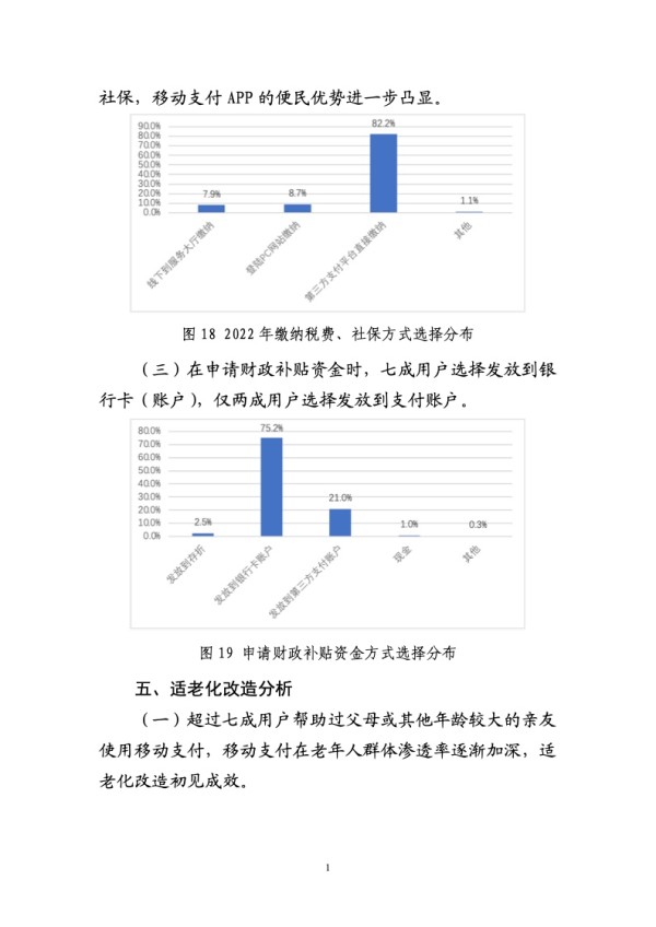 适老化改造方面,超过七成用户帮助过父母或其他年龄较大的亲友使用移动支付,移动支付在老年人群体渗透率逐渐加深,适老化改造初见成效。