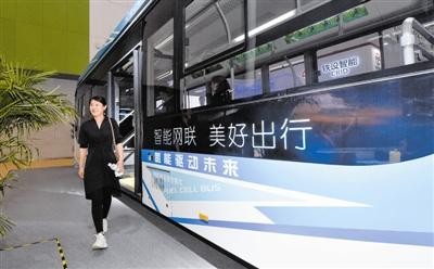 5月20日,參觀者走出氫能源電動城市客車。 新華社發 孫凡越攝