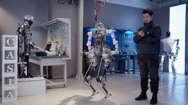 人形机器人攻关团队在中国科学院院士、多模态人工智能系统全国重点实验室主任乔红带领下,面向国家航天、制造产业等重大需求,基于“环境吸引域”高精度作业和类脑智能机器人理论等原始创新积累,自主突破了高爆发一体化关节、AI赋能设计、机器人大模型、类人柔顺控制等核心技术,研制了人形机器人设计组装“大工厂”,可以快速设计构建人形机器人硬件和软件系统,形成了从学术理论、关键技术到系列人形机器人研制创新链,目前已设计出多台Q系列人形机器人样机,初步实现了面向不同场景的技术验证。