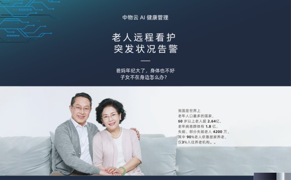 中物云开发的智慧养老平台是利用智能睡测仪与养老机构床位、家庭床位结合,无感、精准地监测体征数据,将数据上传至云端,机构平台可以及时获得有效数据,子女可以手机远程关注数据变化。以老人健康为中心,持续为其提供科学、全面、人性化的健康管理。