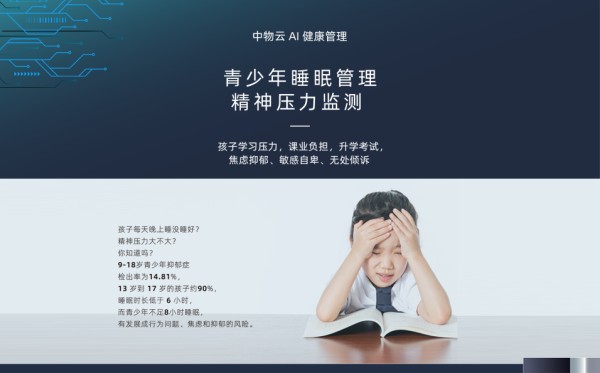 中物云公司以此为出发点,将智能睡测仪应用于青少年睡眠、精神压力监测,以便家长、老师可以随时随地发现孩子健康问题,并采取合理的措施解决问题,让青少年真正成为最积极、最有生气的力量,肩负起国家未来发展和民族强盛的重担!