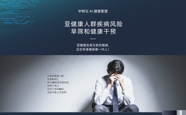 针对亚健康人群,中物云公司硬件产品功能——健康快检,可完成肠胃、高血压、糖尿病三大典型慢病评估。早发现、早治疗,将隐患消灭于萌芽状态。