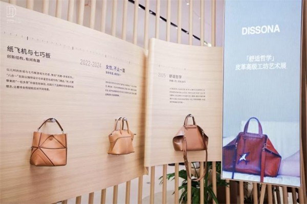 于25SS「闲趣 ·折纸系列」发布之际,国际视野下「创意与工艺双驱动」的质感皮具品牌DISSONA日前以“「舒适哲学」皮革高级工坊艺术展”为名,精心呈现一场关于「折」学的艺术展。本次展览活动选址于深圳第一高楼平安金融中心PAFC MALL A座G层,由12月16日媒体日拉开序幕,后将持续至2025年3月31日。