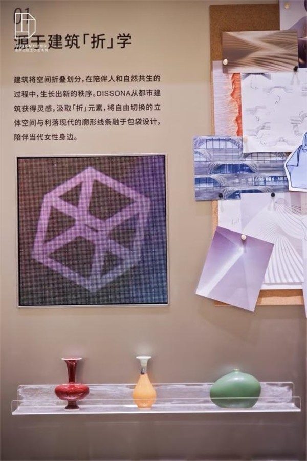 展览以“折”字点睛,纵观DISSONA将「折」的美学与哲学融入包袋设计中,于折展之间发挥皮革的万千可能,其意在向观众全面展示皮的可塑性与包的可塑性。本次展览以一只「折耳包」开启全新叙事,通过丰富的展陈区域及趣味活动为到访来宾创造多面立体的舒适空间,让观众深入体味品牌关于坚持、专注、创新及自我表达的完整叙事。