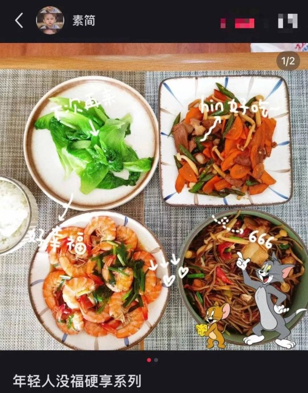方便面里放半斤牛腩,虾仁粥里放一斤虾,对兜兜来说只是做饭的起步价,“因为现在赚不到太多钱,但还是想在可控范围内对自己好点儿。别人觉得一个月攒多少多少才算成功,我定义成功的标准,是有没有把自己照顾得油光水滑。”