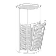2、更换滤芯前,请先确保净化器断电,然后打开净化器背部的滤芯仓门盖,用手往外拉滤芯上下两端的拉手条,取出滤芯。