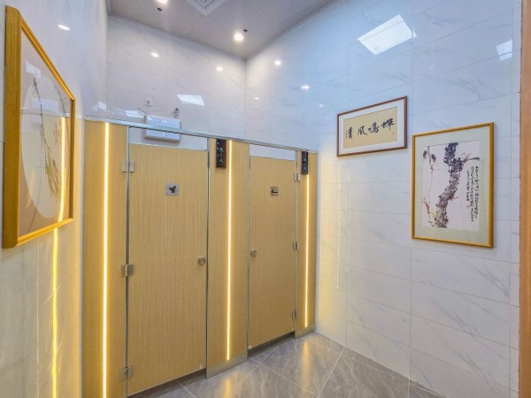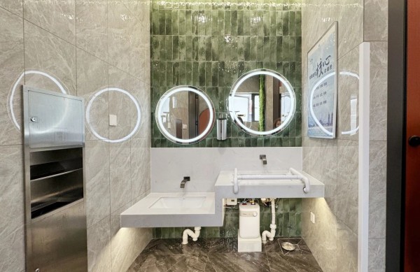 智能节水装置、采光结构设计、内部环保装饰材料的整体运用,在确保公厕环境整洁明亮的同时,进一步降低能耗,践行绿色低碳的理念。