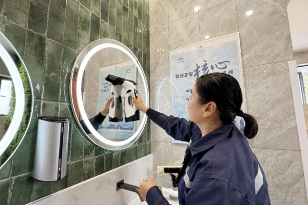 “如居家般温馨的管家式”服务模式,得到了市民游客的广泛好评。“高温蒸汽清洁机”“多功能洗地机”“瞬吸式擦窗机”等新型保洁工具,代替了传统的抹布、拖把,在提高保洁效率的同时,对公厕进行深度清洁与消毒杀菌。市民在如厕时享受到更加干净、舒适的环境,科技助力让生活更美好。