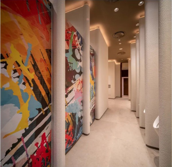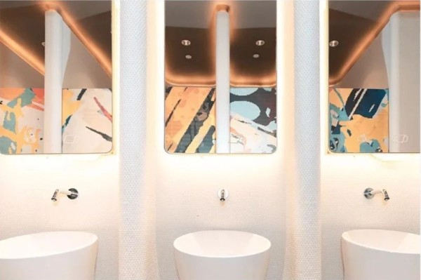 天安·千树L1-西卫以个性精致的艺术画作为点缀装饰,在用心营造艺术空间同时,不忘洗手间的本质功能,紧抓隐私与实用。起伏式的墙面设计保证了隐私性,营造出充分的放松氛围;为保证实用性则设置了全自动感应式洁具,为市民提供了贴心的免接触设计,重新定义了公共空间的洁净体验,真正做到了用科技给予人文关怀。