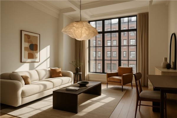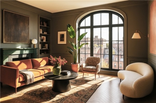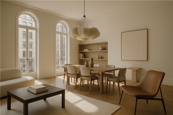 色彩节奏:以低饱和的中性色为基调(如米灰、暖白),局部加入墨绿、深灰、藏蓝等深色点缀,帮助集中视觉焦点,也增强空间的张力。