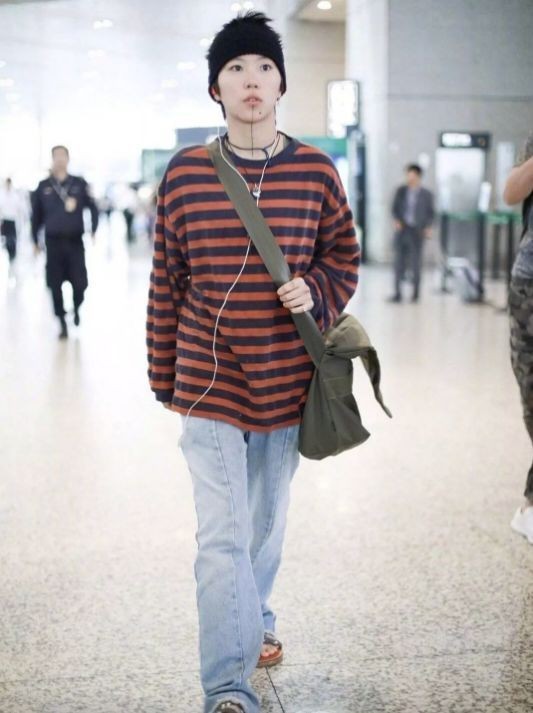 比如,窦靖童休闲随意的私服造型和军绿色的挎包。