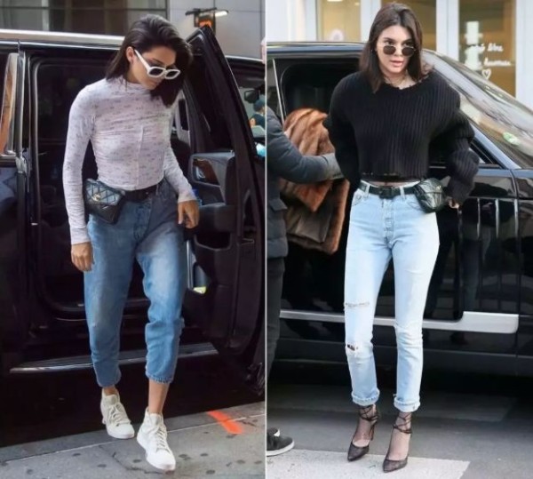 比如,Kendall腰包和墨镜的复古单品搭配的休闲造型