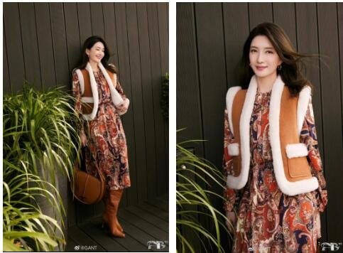 复古背心是GANT的钟情设计,在今年推出的2022秋冬系列中,这件驼色羊毛背心格外吸睛,演员江疏影身穿该系列羊毛背心,搭配同为GANT品牌的印花连衣裙,复古氛围拉满。