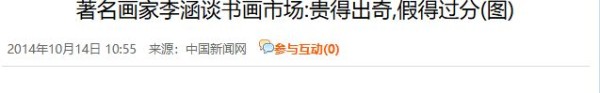 3.中国新闻网:《著名画家李涵谈书画市场:贵得出奇,假得过分》2014-10-14