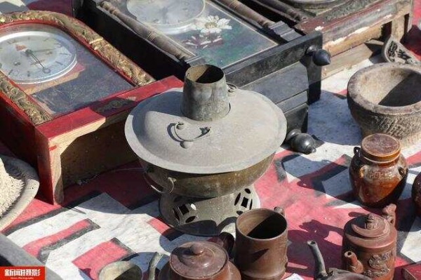 6/10这是一只老式的炭火火锅,类似于老北京的铜锅涮肉,如今也跟钟表一起摆在了古玩摊上。