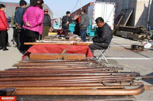 3/10现在人们生活条件好了,之前随意丢弃的很多老物件,又开始怀旧,他们便选择在市场上淘一件,作为装饰品。图为曾经重要的度量工具杆秤,一根价格卖到二三百元,如果遇到黄花梨一类木头,则价值过万。