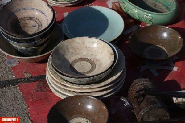 2/10据了解,古玩市场的老物件除了卖给电影剧组作为道具,很多乡村展览馆做展示外,更多的客户则是个人。图为流传了几十年的小簸箩,卖100元一个。