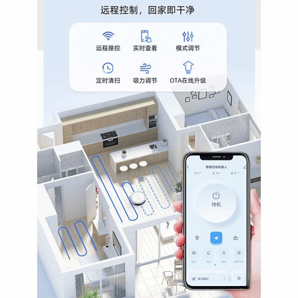 ✔️全自动清扫:智能设备能独立完成地面清扫,节省宝贵的时间与精力,让忙碌生活中的清洁变得简单、轻松。无论是工作后放松还是真正的享受生活,都不必再担忧家庭清扫问题。 ✔️薄款设计:巧妙的薄款设计,使得清扫机器人能够顺利进入家具底部和狭小角落,深度清洁更全面。这样一来,每一个隐秘的灰尘和杂物都不再被忽视,环境更加干净整洁。 ✔️吸尘洗地一体:结合吸尘与洗地功能,实现高效合一的清洁体验,适应各种不同地面的需求。无论是木地板还是瓷砖,该设备都能胜任,让每一寸空间都焕然一新。 ✔️自动充电:采用自主返回充电站的设计,确保设备在闲置时也能及时充电,随时保持最佳工作状态。这样的智能化管理,为用户提供了更便捷的清洁方案,告别传统手动清洁的束缚。 ✔️APP控制:通过手机APP远程控制,不再需要亲自操控,有利于制定个性化清扫计划,真正实现智能家居的便利体验。轻松几步即可设定,无需劳神,让清扫变得更轻松愉悦。