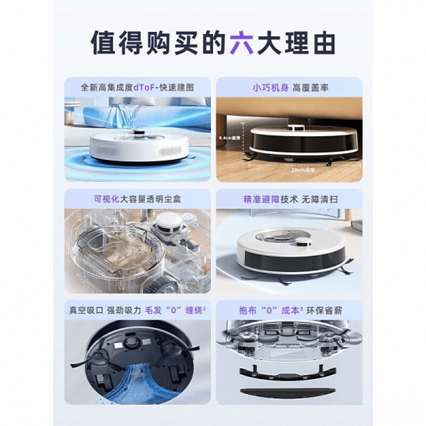 ✔️高效激光导航:前沿的激光导航技术,能够精确建图,智能规划最佳清扫路线。无论是复杂房间布局还是家具间隙,它都能自如应对,确保每一个角落都不被遗漏。 ✔️强力吸尘设计:配有高效真空吸口,让细小灰尘和缠绕毛发无处藏身,保持家中洁净如新。在日常清扫中,卓越的吸力让打理变得轻松愉快。 ✔️超长续航表现:150分钟的持久续航支撑大面积清扫,特别适合宽敞居所使用。用户无需频繁充电,轻松应对不同环境带来的清洁挑战,省时又省心。 ✔️灵活避障能力:小巧机身搭配毫米级避障技术,使得狭小空间的清扫也不在话下。无论沙发下、床边,皆能精准清洁,充分满足家庭的各种需求。 ✔️透明尘盒设计:可视化的尘盒让清扫状态一目了然,随时知晓清洁情况,减少传统尘盒带来的清理烦恼。及时查看,轻松掌控清洁进度,保证清洁效果。