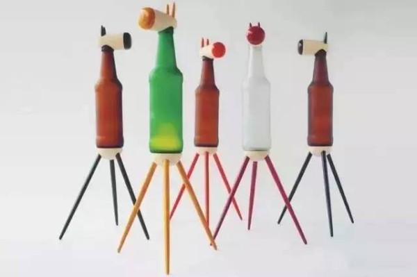 废酒瓶可爱动物灯。这些由玻璃和木材两种鲜明材料制成的灯具,用恰到好处的独特形态,突出了家庭风格的现代性。