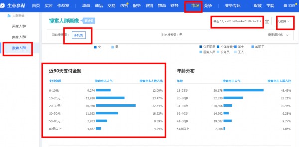 并且有些掌柜想着低价引流或者是之前操作过这种玩法的掌柜,有没有发现一件事情。你低价引进来的访客其实对你店铺那些高价产品都是不感兴趣的并且售后还比较多。而且如果这个时候你直接涨价的话你会发现你的店铺的访客直接没有掉了。这就是因为你之前低价引进来的访客加深了这个价格标签,那么淘宝就会给你匹配这个价格的人群。如果你的价格直接修改的话,就会出现你店铺现在的人群不是现在这个价格带的目标人群。那么定价如何定价呢?如果是有生意参谋专业版的掌柜,我们可以直接使用搜索人群画像这个工具。如下图(2)
