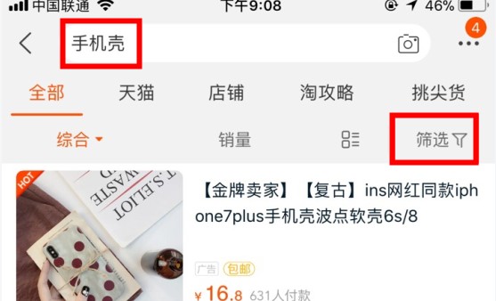 如果是没有工具的掌柜如何定价呢?---直接使用我们的手机淘宝。在搜索框搜索产品的关键词—点击筛选,就会有淘宝的推荐的价格区间。如下图(3、4)