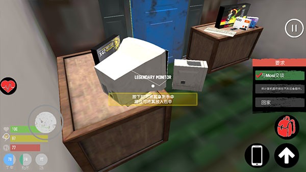 4、然后完成第二个任务,在门背后获取电脑装备,点击拾取,放入背包。