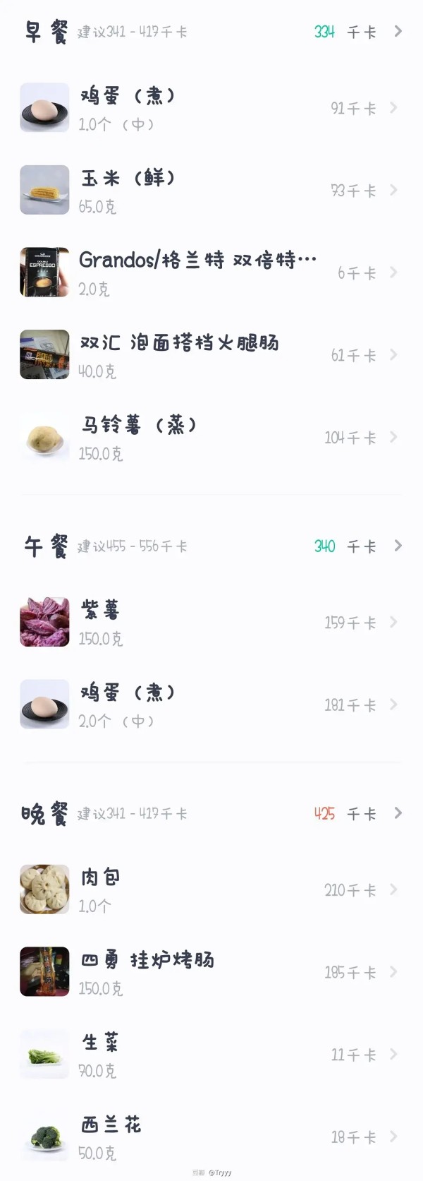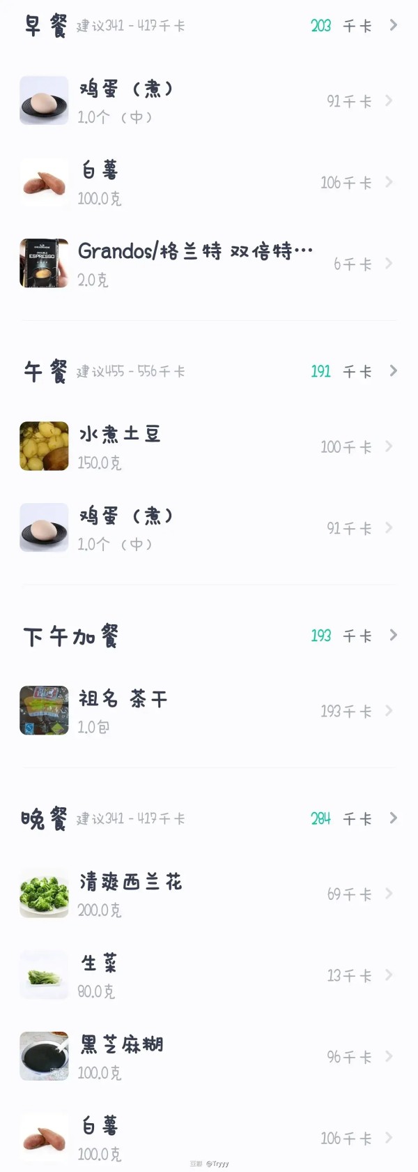 饮食:粗粮饭团150g,蒸胡萝卜50g,蒸西兰花20g,水煮蛋两个,香肠2根,生番茄一个,蒸土豆一个,蒸紫薯一个,生菜20g