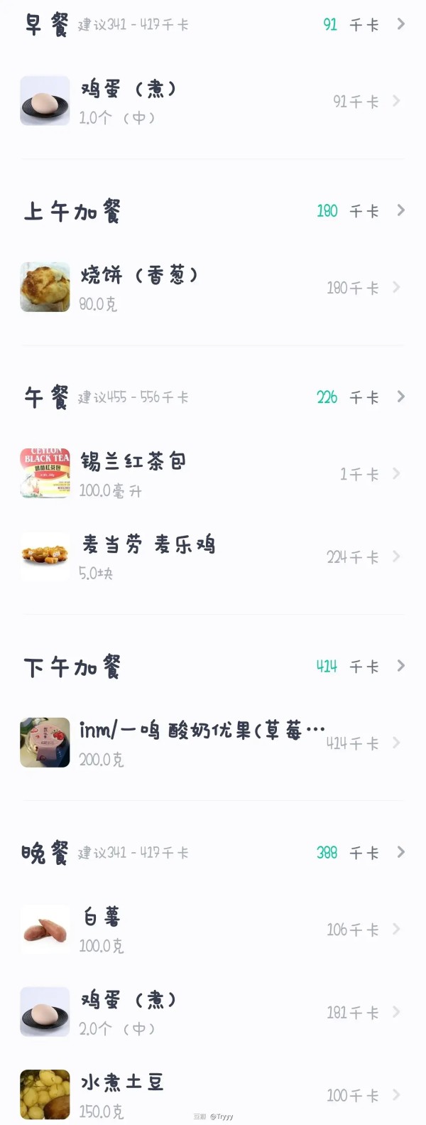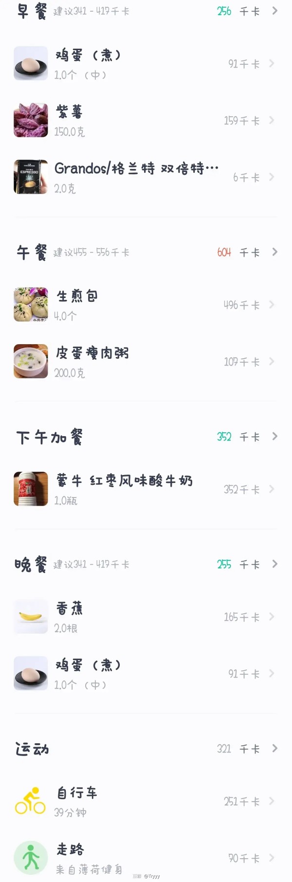 饮食:烧卖一个,豆沙包一个,面包片150g,鸭肉50g,水煮蛋2个,绿叶菜50g