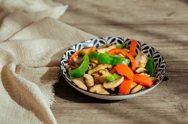 1、蘑菇洗淨後切片,青紅椒取少量切片。