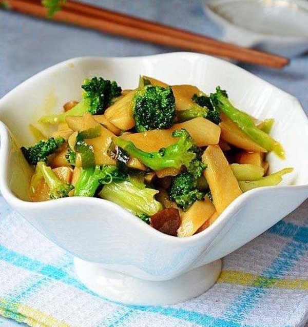 食材:西蘭花150克,杏鮑菇250克,橄欖油,素蠔油,鹽,蔬果調味粉各適量