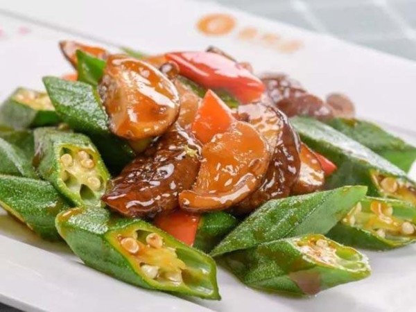 材料:秋葵,香菇,紅椒,鹽,素蠔油,生抽,磨菇精,生粉水,香油