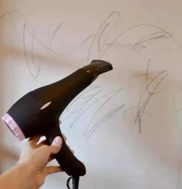 我们可以试试用吹风机加热墙面,软化蜡笔痕迹,再用抹布蘸取小苏打和洗洁精的温水混合溶液,打圈擦除墙上痕迹即可。
