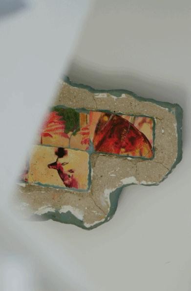 我父母每年会来上海一个月左右看我,有一次我下楼就闻到一股非常浓烈的中药的味道,我发现他在院子里面煮中药,一方面会觉得很心疼他,一方面中药味很强烈地勾起家庭的记忆,好像我和父亲之间的关系,在中药的味道里面溶解了,甚至有一种疗愈。我还做了一些陶瓷碎片的小物件,碎片上面其实是中药药方。