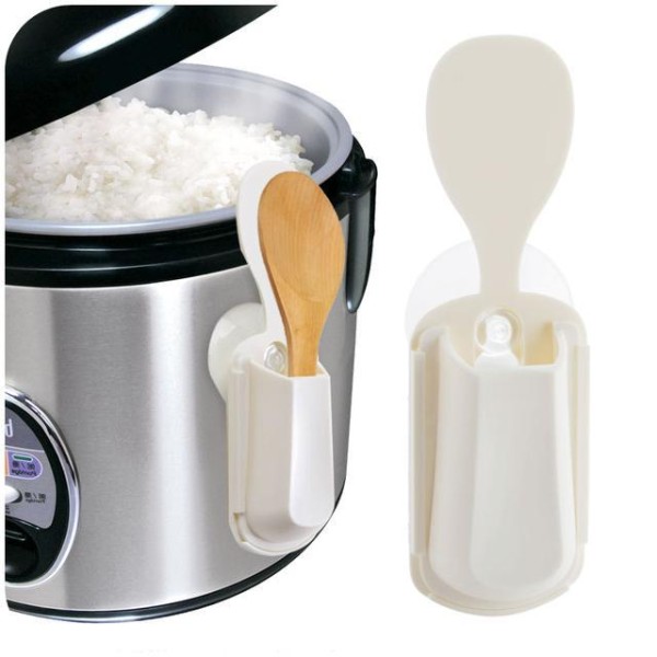 可拆卸饭勺收纳架,采用优质食品级PP材质,环保,无异味,易清洗,带吸盘设计,可以吸附在瓷砖、电饭煲等光滑表面,使用方便简单。