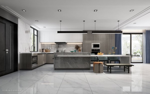 经过岩板打造而成的中岛台,在空间彰显出与时俱进的美与功能,舒适与实用性兼得的本质,也为生活打上优雅、愉悦的烙印。