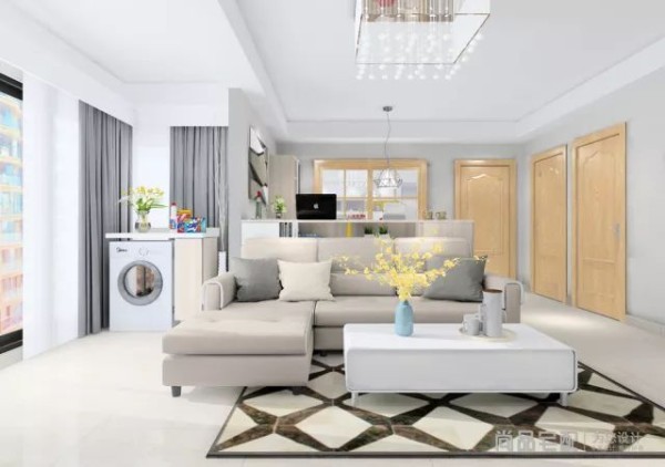 把原先属于阳台的地方拆掉重新设计,和客厅无缝衔接,设计成休闲区。平时可以在这里沐浴阳光或者是煲煲电视剧,惬意的日子就这么过着。
