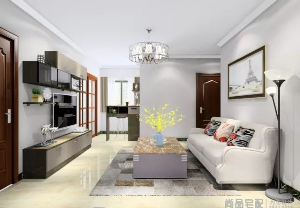 白色的茶几搭配米褐色的沙发,整体感觉非常的简约时尚。一家人坐在这里聊聊天,看看电视,是人生的一大享受。