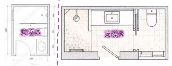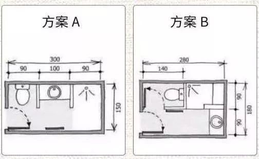 ▍如何布局:1-4㎡的正方形小空间,浴室偏在一角▼
